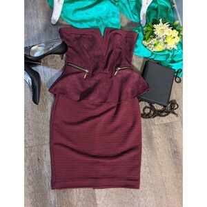Vintage Strapless Party Dress by Venus, Merlot Midi Dress Size 6