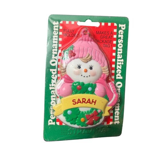Vintage Stravina “Sarah” Personalized Snowman Ornament Molded Holiday Christmas
