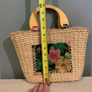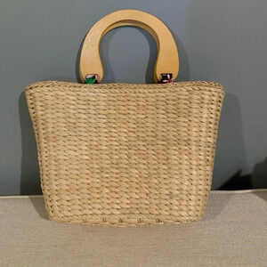 Vintage Straw Purse with wooden handles