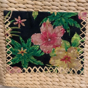 One floral fabric pocket on outside of purse