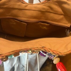 Brighten your style with this vibrant woven handbag. Featuring a multicolor design and a unique beaded handle, this bag is perfect for any occasion.