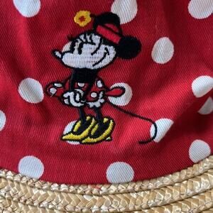 Vintage Straw Sun Hat Cap Red Polka Dots Foldable Walt Disney World