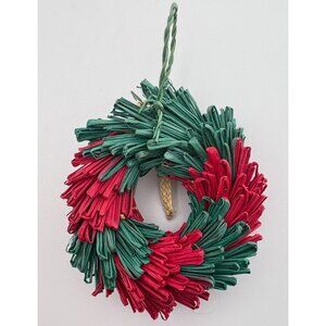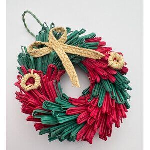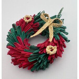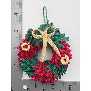 Vintage Straw Wreath Christmas Tree Ornament with Bow Country Rustic Red Green
