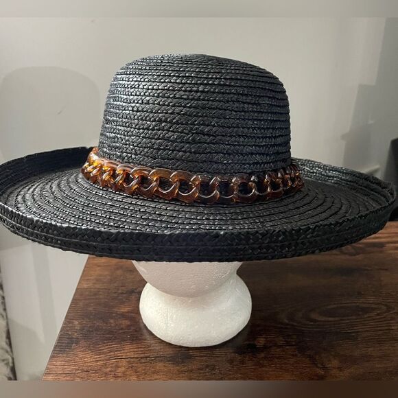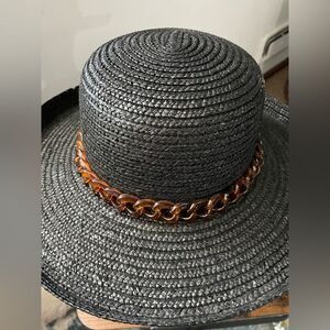 Vintage Straw Hat With Plastic Chain Hat Band Black