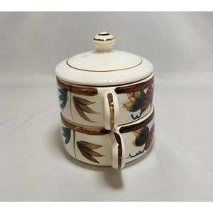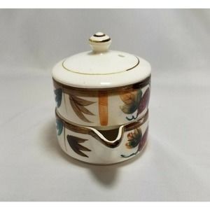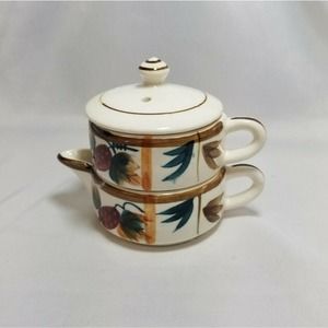 Vintage Strawberry Autumn Leaves Stackable Ceramic Sugar Bowl & Creamer Pitcher