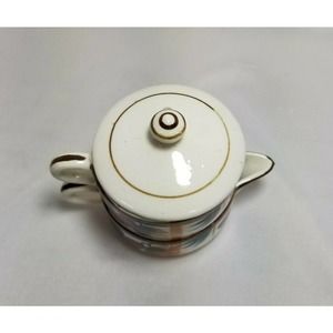 Vintage Strawberry Autumn Leaves Stackable Ceramic Sugar Bowl & Creamer Pitcher. Excellent Pre-owned condition with no chips or cracks