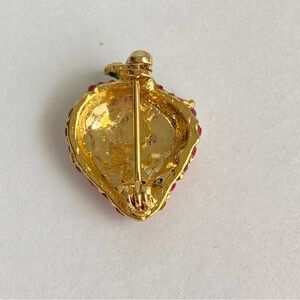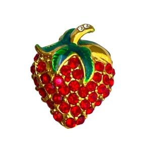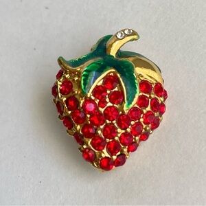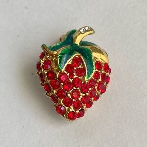 Vintage Strawberry Brooch Red Rhinestone Pin Gold Sparkly Fruit Small Dainty