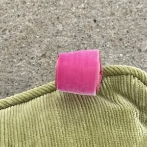 This is a super cute VTG pillow with a pink velvet tab