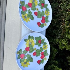 Each plate features a delightful strawberry and floral pattern, bringing a fun, cheerful, and collectible vibe to your kitchen, picnic, or vintage display!
