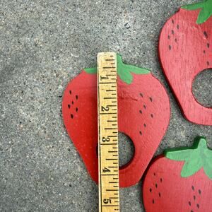 Vintage Strawberry Napkin Rings Holders Hand Painted Wood Set of 4