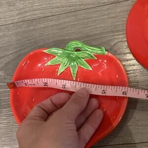 2 Vintage 60s Rosenthal Netter 6” Ceramic Red Strawberry Trivet Dish Japan