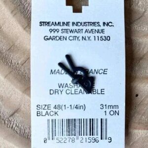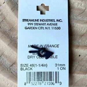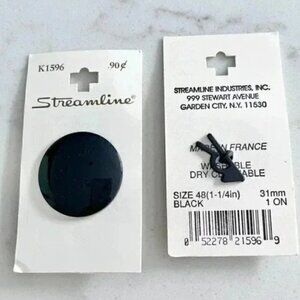 Vintage Streamline Black Buttons Set of 6 Round 1.25" Sewing Craft Supplies New With Tags NWT Brand: Streamline – High-quality vintage buttons Quantity: 6 Buttons – Matching set for garments or craft projects Color: Black – Classic and versatile for any design Size: 1-1/4" (1.25 inches) diameter – Great for coats, blazers, or accessories Material: Plastic – Durable and lightweight Condition: New, Vintage – Unused with original packaging These vintage buttons are ideal for sewing, crafting, DIY projects, costume design, and restoring vintage clothing. A must-have for collectors, designers, and sewing enthusiasts! Keywords: vintage buttons, Streamline sewing buttons, black round buttons, craft supplies, DIY sewing notions, retro buttons, garment accessories, 1.25-inch buttons
