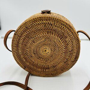 Vintage Street Level Wicker Rattan Basket Weave Crossbody Handbag Round