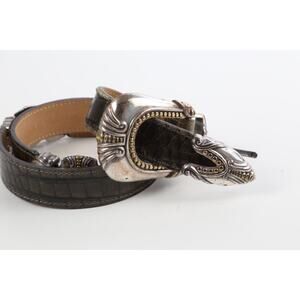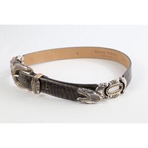Vintage Streets Ahead Croco Print Leather Skinny Belt Western Buckle Size S