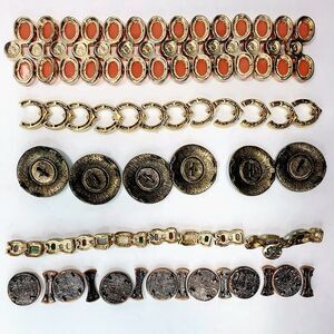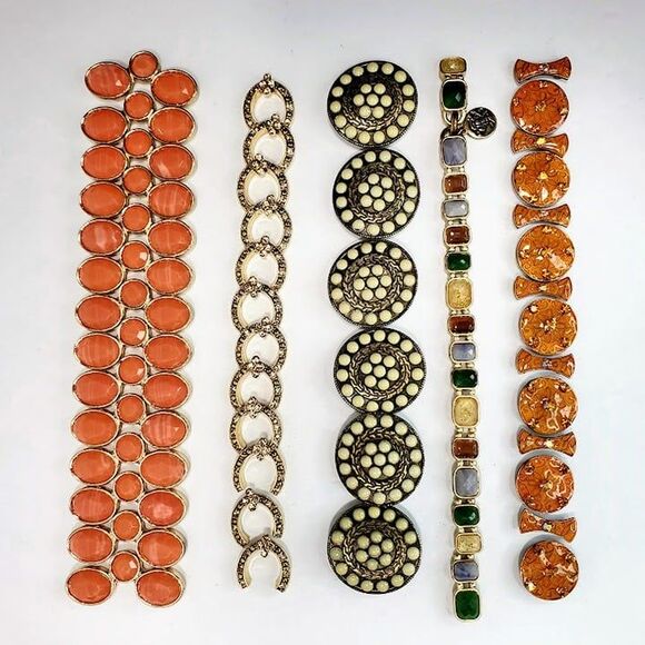 For handmade bracelet makers & jewelry crafters: findings for 5 different bracelets whose original stretchy strings broke. Since the hardware is in excellent condition, they are worth giving a second chance. Two are by Monet, & the other 3 are unbranded as far as I could tell. No strings are included - just the parts as seen in the photos.