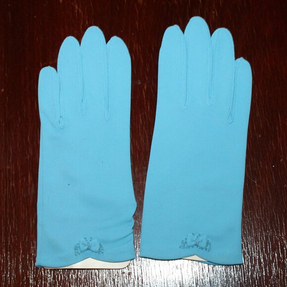 Vintage Stretch Nylon Blue Ladies Dress Gloves