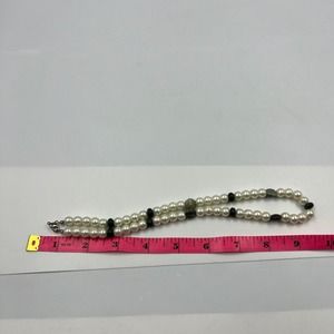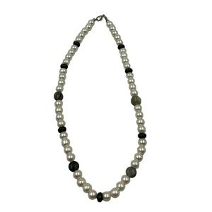 Vintage string of pearls and other beads necklace with clasp closure, midcentury modern style.