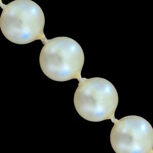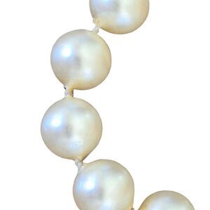 This strand was purchased from Parisian in 1985.  Parisian carried quality pieces and this strand of faux pearls is no exception.  They are from my personal jewelry collection, and I've maybe worn them 3-4 times since 1985.  They can be doubled or tripled, or styled at varying lengths.  No clasp.