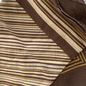 Vintage Beautiful Brown Tan Cream striped Handkerchief or Neckerchief Scarf