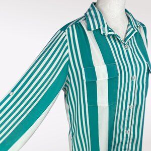 Vintage Striped Button Up Blouse Long Sleeve Silky Size Medium