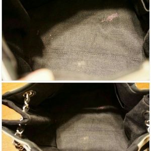 @mkayla1063 updates photos. it's such a stunning bag! there's the slightest wear at the top and pretty well unnoticeable spotting on the white. I had to really look hard for it. See photos for details. it's been kept in a purse cover and box since owning and I'm hoping someone will be enjoying it out!
