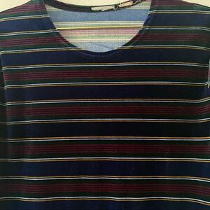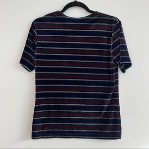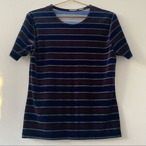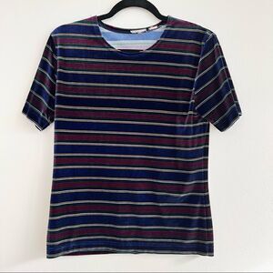 Vintage Striped Navy Maroon Green Gold White Velvet Stretch T-shirt Size Medium