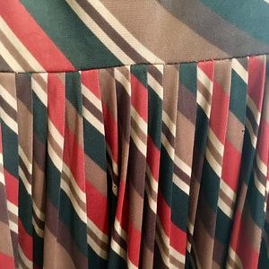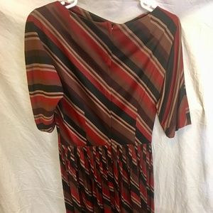 Vintage Striped Red Brown Pleated Boatneck Dress