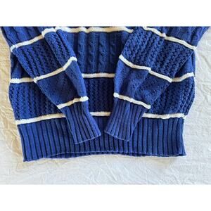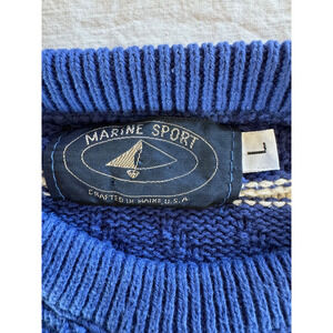 Vintage Striped Sailing Sweater Mens Sz L Blue 1980s Pullover Marine Sport USA