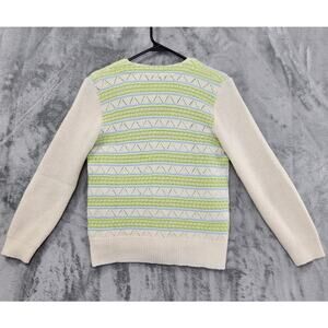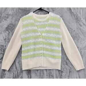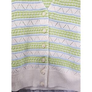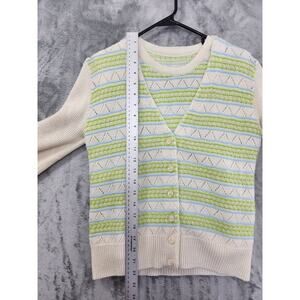 Vintage Striped Sleeveless Cardigan Twin Set Size S Cream Green Pointelle Knit