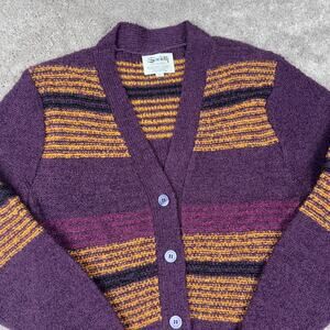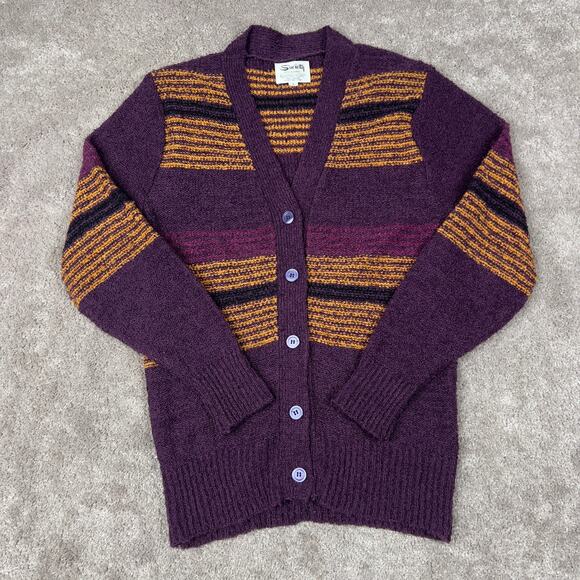 Vintage Striped Sweater Cardigan Size S Society Purple Orange Grandpa Grunge