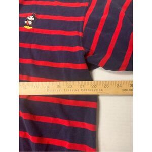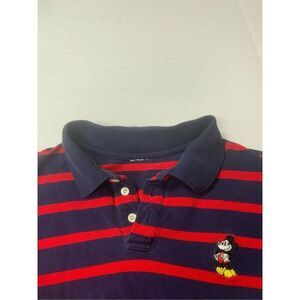 Mens red and navy blue striped vintage Mickey Mouse embroidered logo graphic polo style top by Disney. Excellent vintage condition. Mens size large.