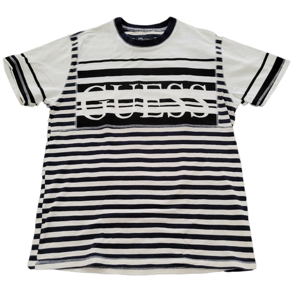 Vintage Stripes Blue, Black, and white GUESS Logo T-shirt