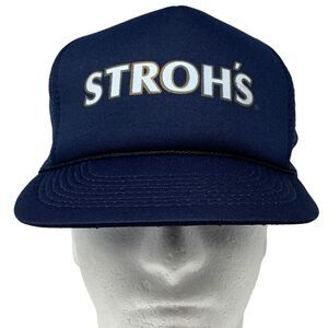 Vintage Strohs Beer Trucker Hat Baseball Cap 80s 90s Brewery Blue Mesh Snapback