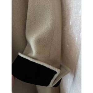 • Color: Beige with black velvet collar and cuffs