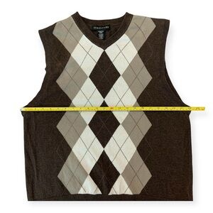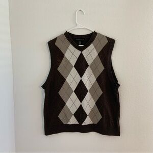 Vintage Structure Academia Brown Diamonds Argyle Sleeveless Grandpa Sweater Vest
