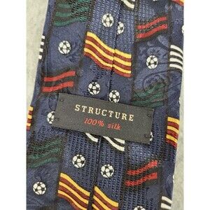 Vintage Structure Denim Mens Necktie Tie Silk Soccer USA Navy Blue Red Yellow