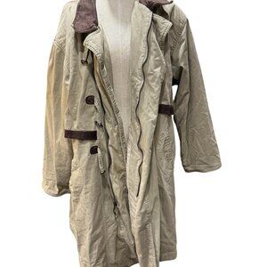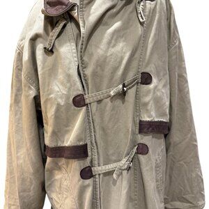 Vintage Structure Expedition Gear Canvas Duster Coat XL – Tan with Brown Trim, Toggle Closure