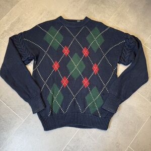 Color/Pattern: Blue with argyle front and cable knit sleeves