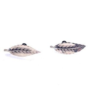 Vintage Stuart NYE 925 Sterling Silver Willow Leaf Earrings Screw Back Closure