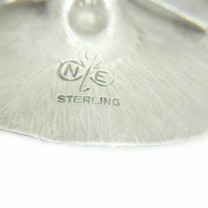 Back of pin brooch is marked Sterling, Patent 2.215, and signed with the Stuart Nye logo mark.