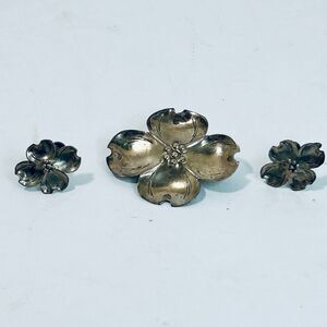 Vintage Stuart Nye RARE SET Sterling Silver Dogwood Floral Brooch and Earrings