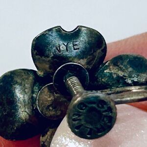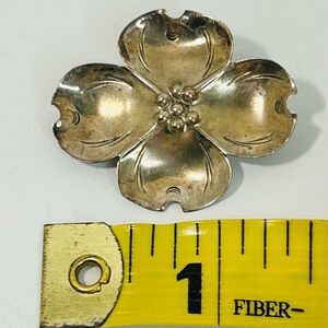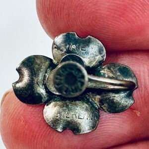 Vintage Stuart Nye sterling silver dogwood flower brooch PLUS matching clip-on earrings. The set features Nye’s signature design of the flowering dogwood blossom in solid sterling silver. Signed with hallmark on back. 1.4” width and 1.15” height. Great pre-owned condition, gorgeous natural patina areas on front and back as pictured. GORGEOUS SET, nearly antique dating to 30’s-40’s.