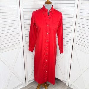 Vintage Stuart Randolph Button Down Shirt Dress Red Small Midi Long Sleeve