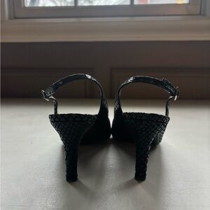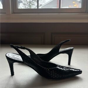 Step out in style with these elegant python black slingback heels. Perfect for any occasion, these shoes offer both comfort and sophistication.