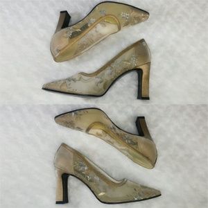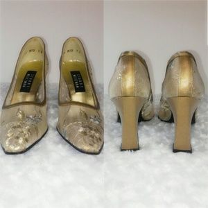 Vintage Stuart Weitzman Sheer Gold Floral Heels