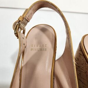These vintage Stuart Weitzman yellow patent wedge heels in women's size 9M are a stylish platform shoe perfect for various occasions like parties, casual outings, formal events, and business meetings. The peep toe design, adjustable straps, and breathable features make them comfortable and versatile for summer, fall, and spring seasons. With a platform height of 1 inch and a heel height of 3.5 inches, these stylish shoes offer both comfort and style, making them a great addition to any woman's wardrobe.