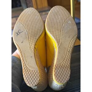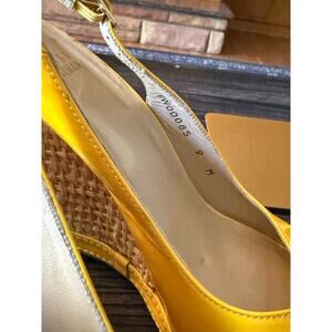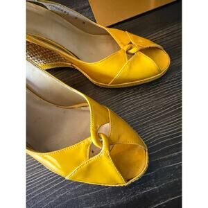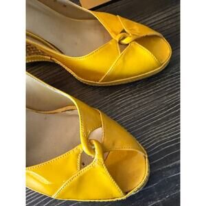 Vintage Stuart Weitzman Yellow Patent Leather Peep Toe Slingback Wedges Sz. 9