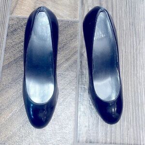 Vintage Stuart Weitzman black leather 4” heels w/5” platform.