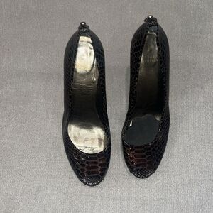 Vintage Stuart Weitzman brown leather reptile print textured 3.5” heels.