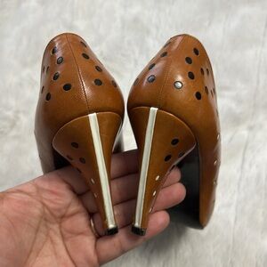 Vintage leather Stuart Weitzman heels with little black and white polka dots. These are preloved and do show some wear. Stuart Weitzman for Mr. Seymour is the original brand that started Stuart Weitzman in the 80’s. It’s hard to see the size, but they’re a size 6. True to size.